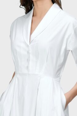 Professional Office wear Coat Collar Nack Cotton Long Dress.